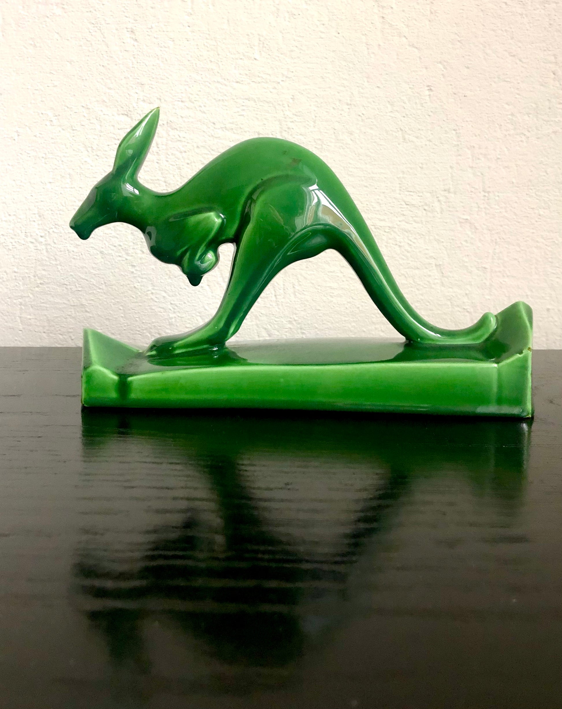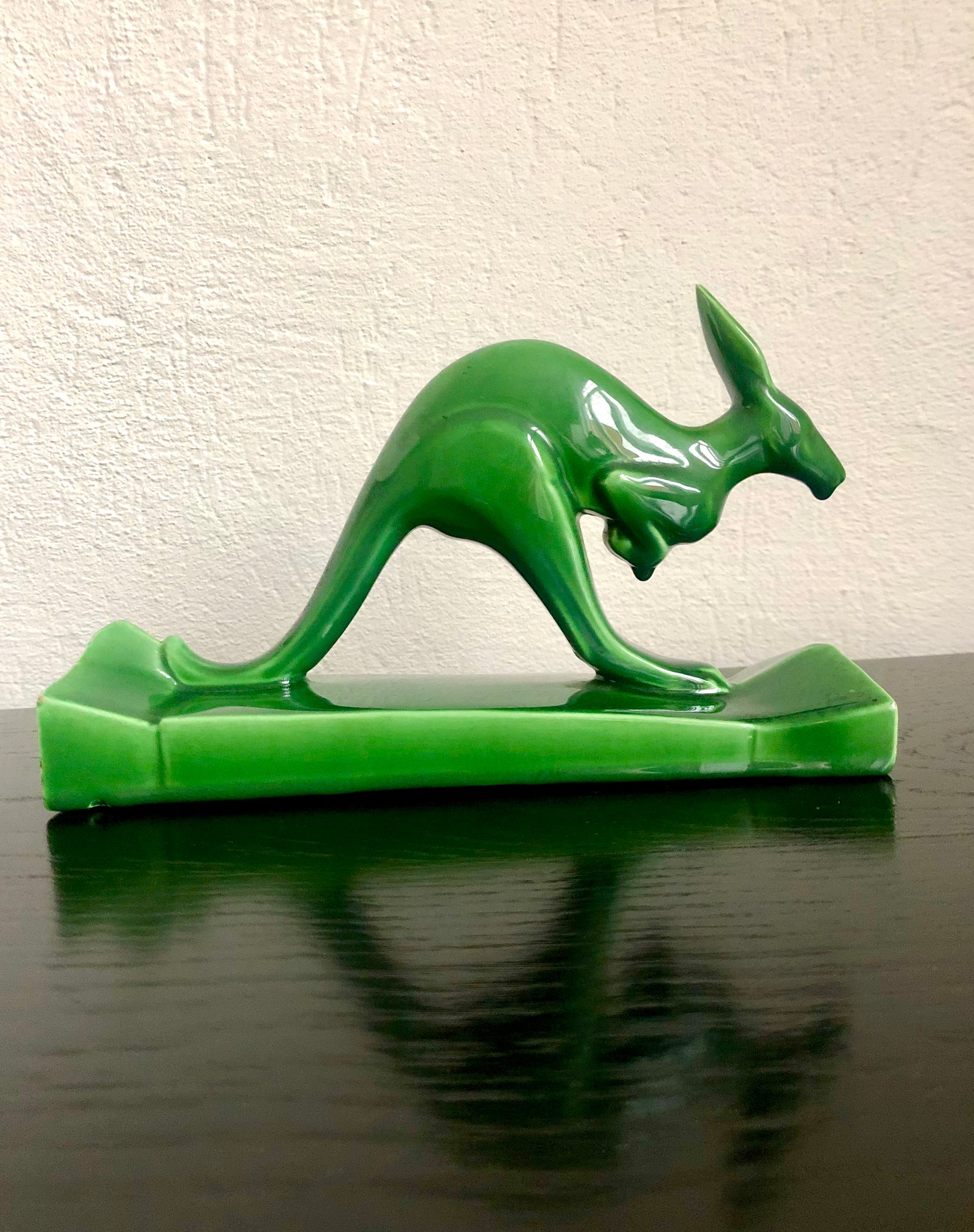 Kangoeroe Art deco groen keramisch beeld in perfecte staat 1930 , 27cm breed,7cm breed,17cm hoog
