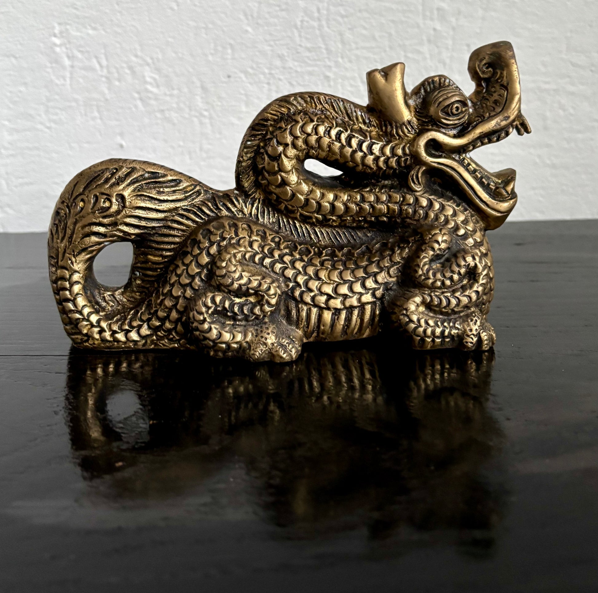 Fijn gedetailleerd bronzen beeld van Draak uit India , handgemaakt eind 20ste eeuw. H14/ L22cm