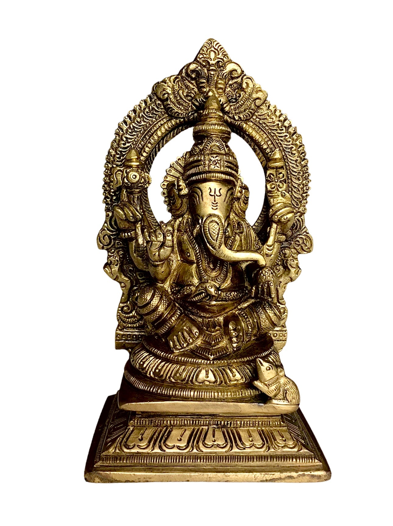 Ganesha/ de god van kennis en wijsheid, neemt hindernissen weg en is de beschermheilige van reizigers/ messing/ L16, B10