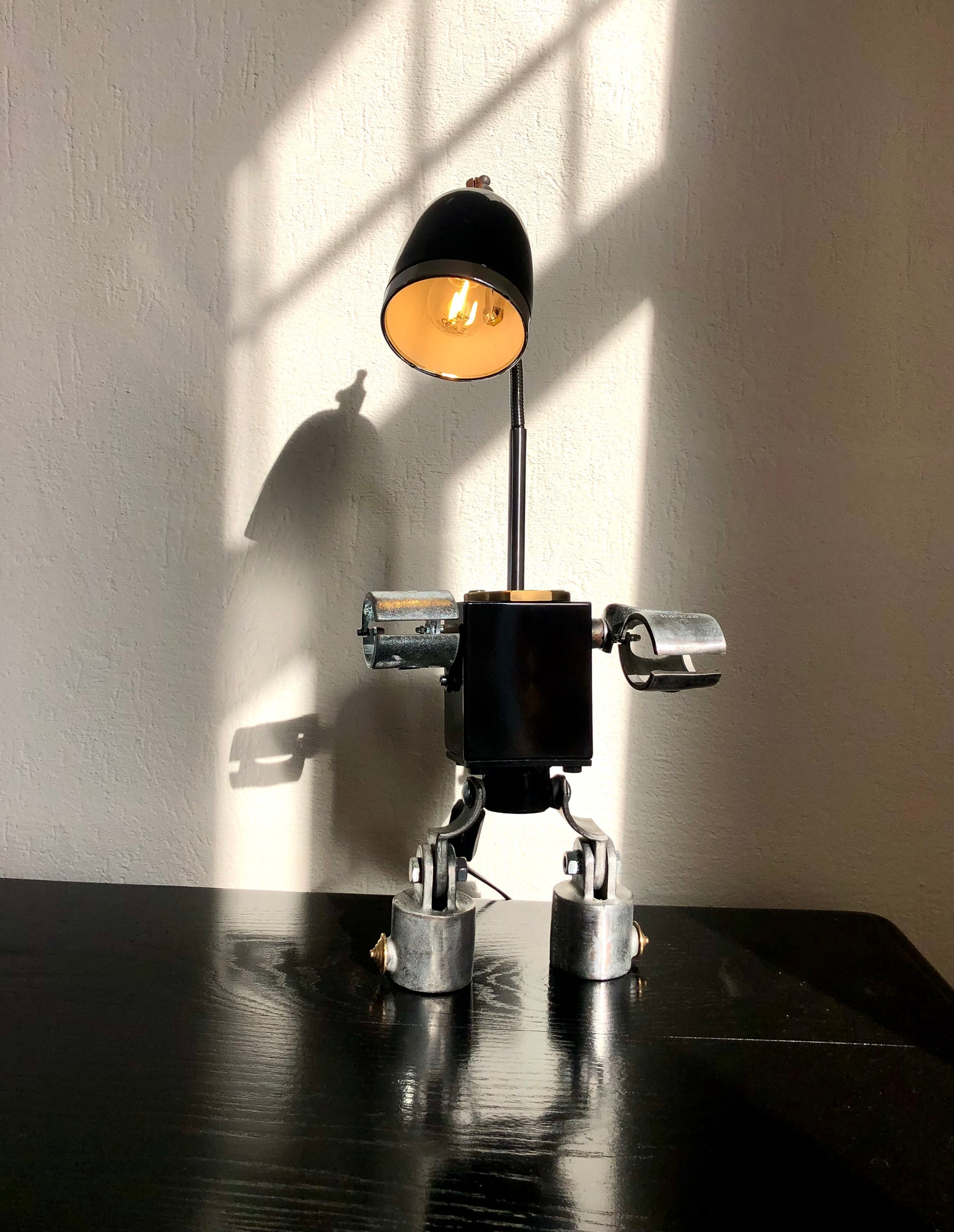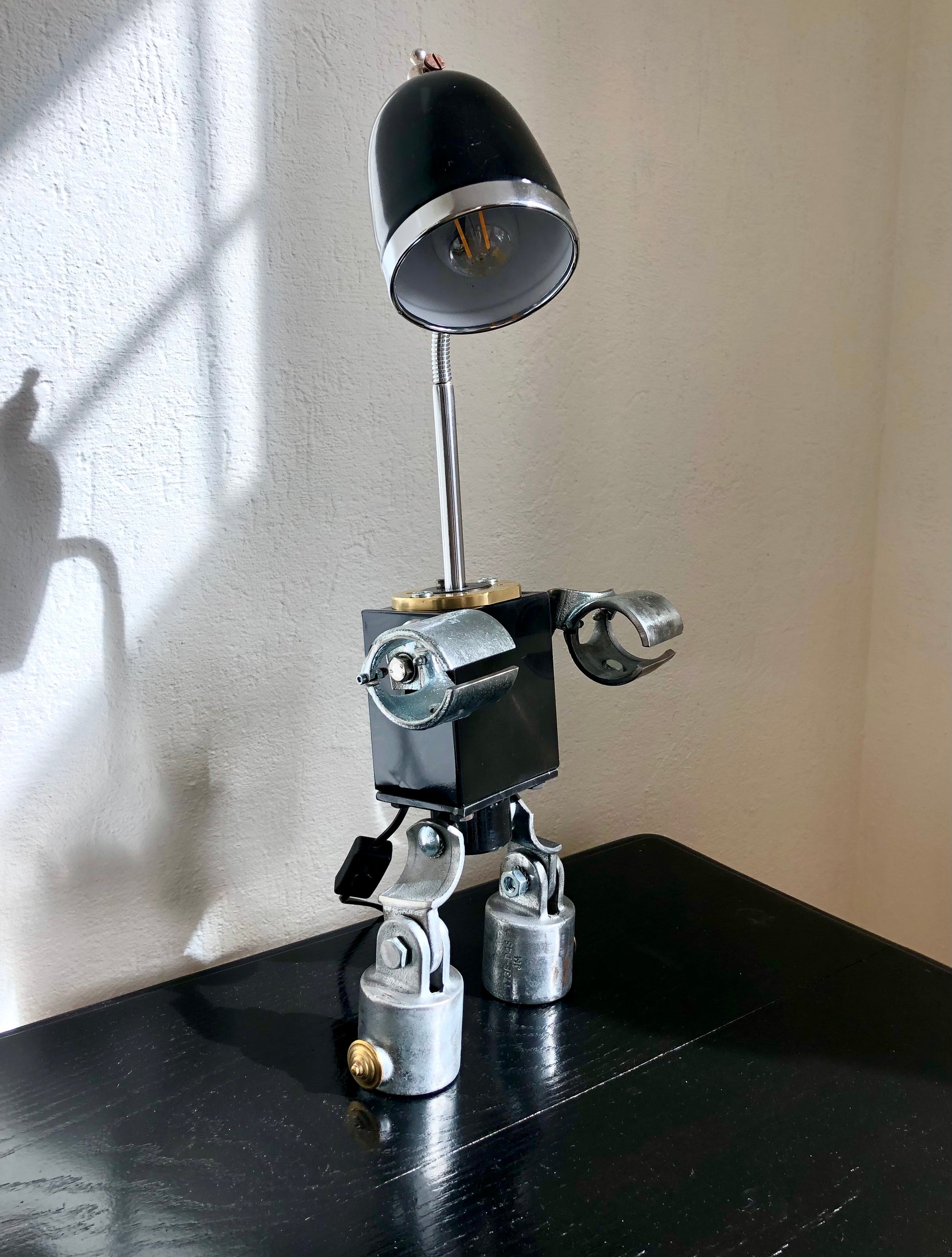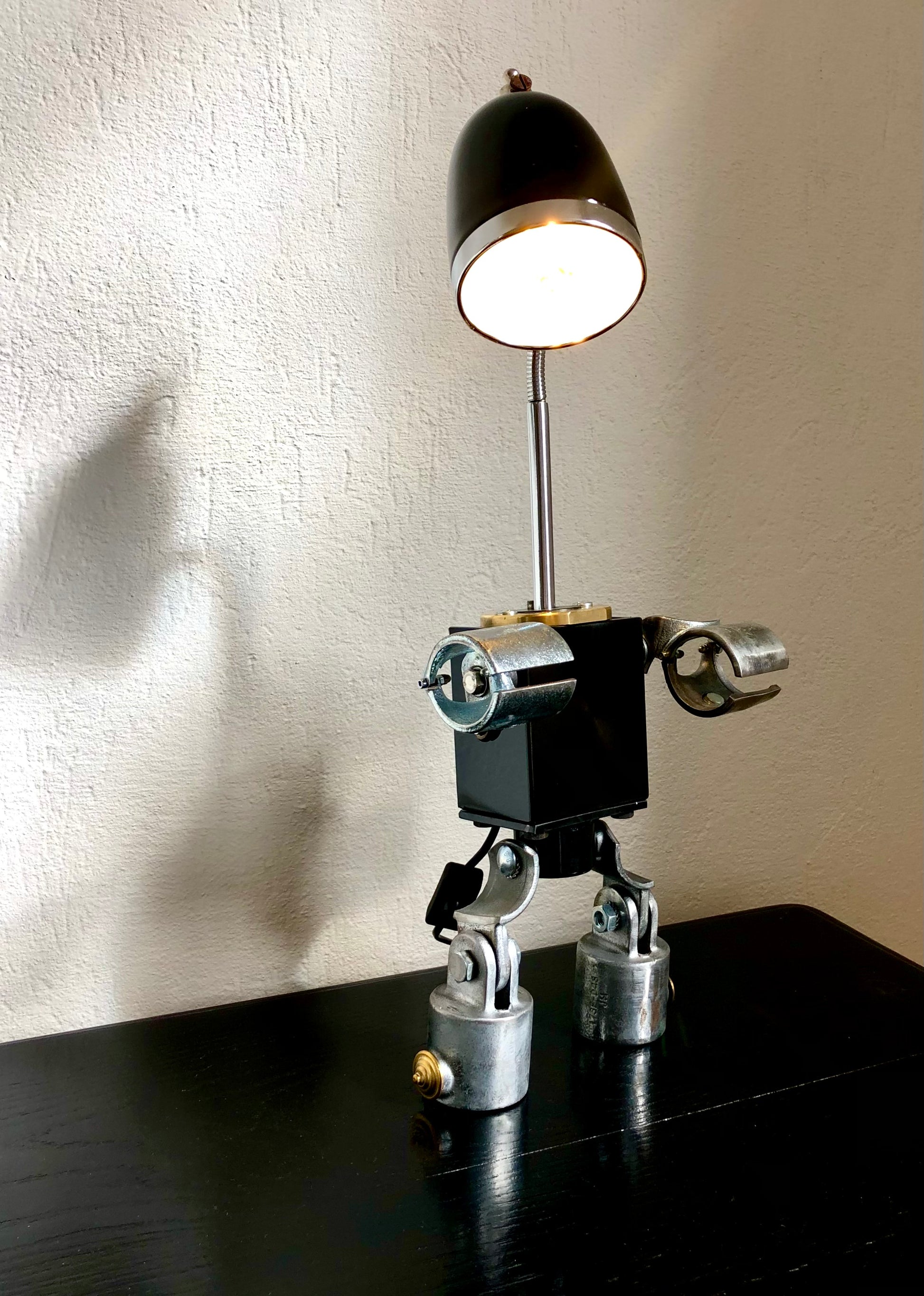 Bender light -tafellamp is gemaakt van gerecycled messing en roestvrij staal (RVS). H57 /B24 , uniek stuk