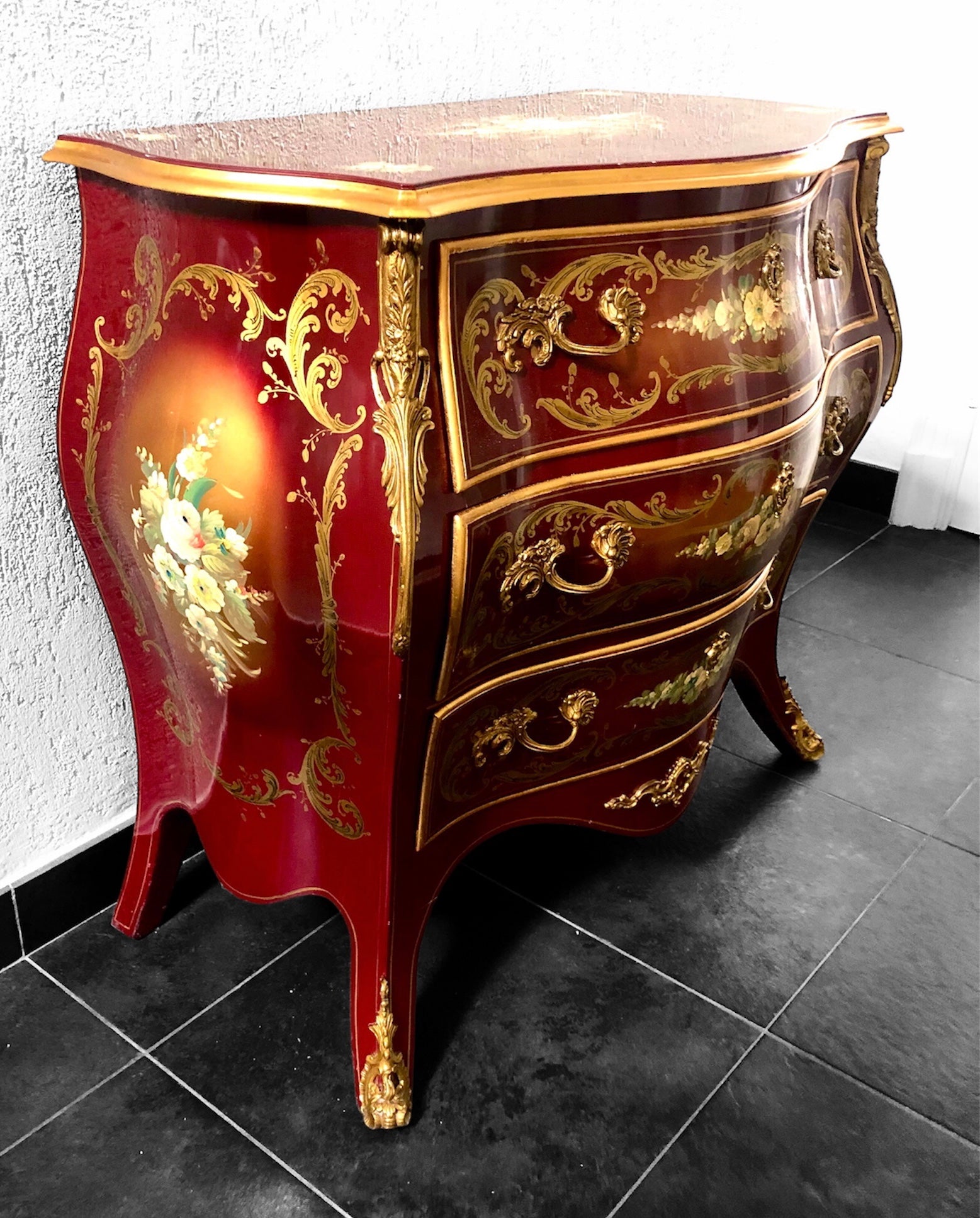 Hand-painted Spanish bombé chest of drawers , Louis XV style