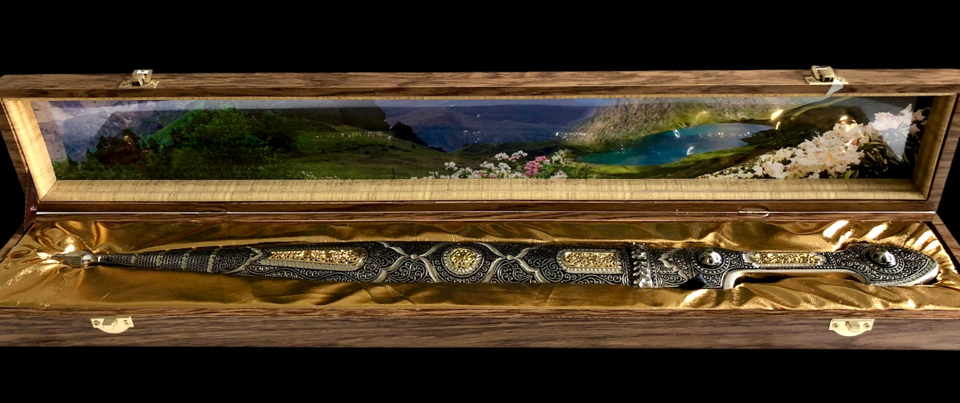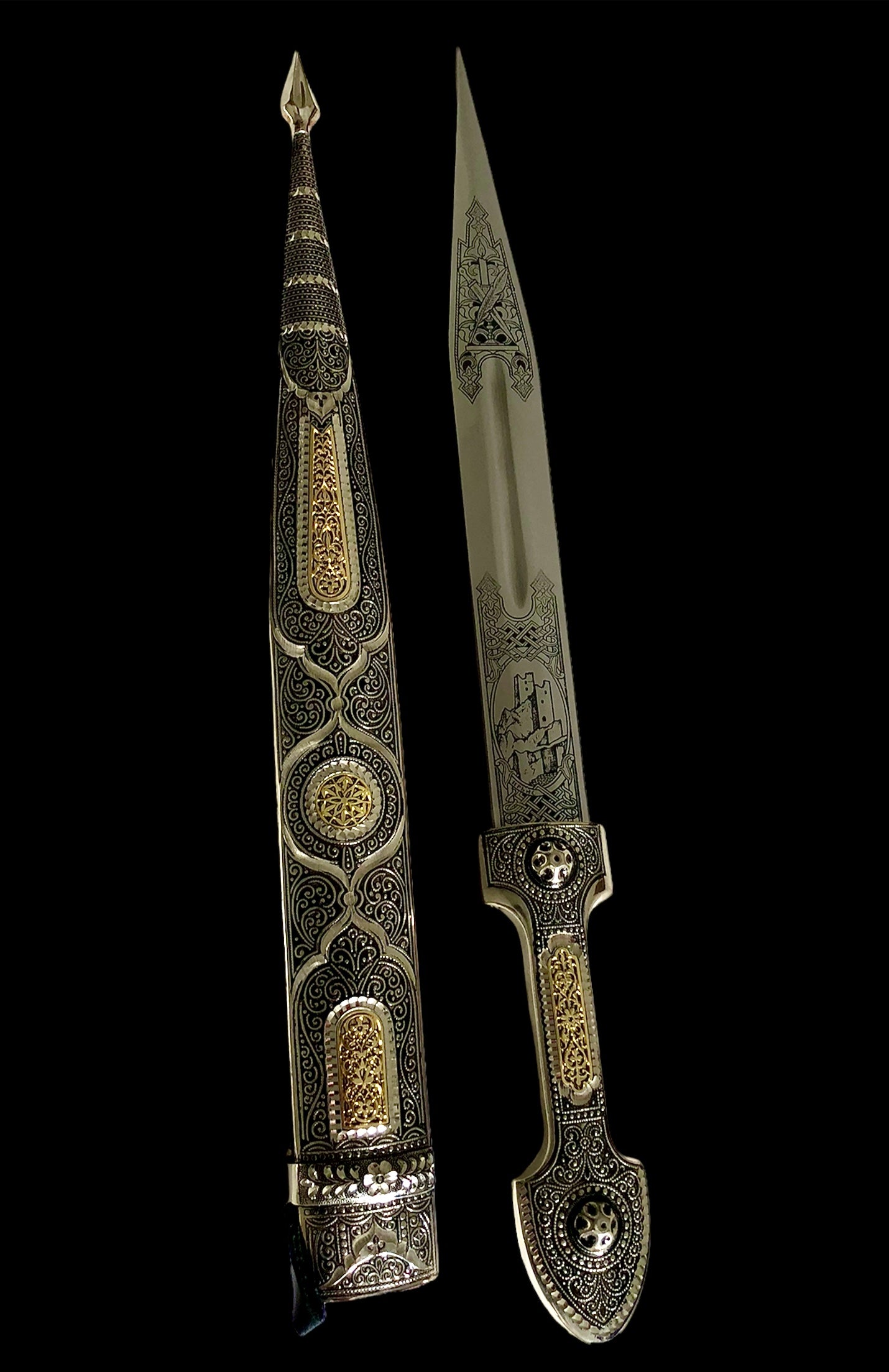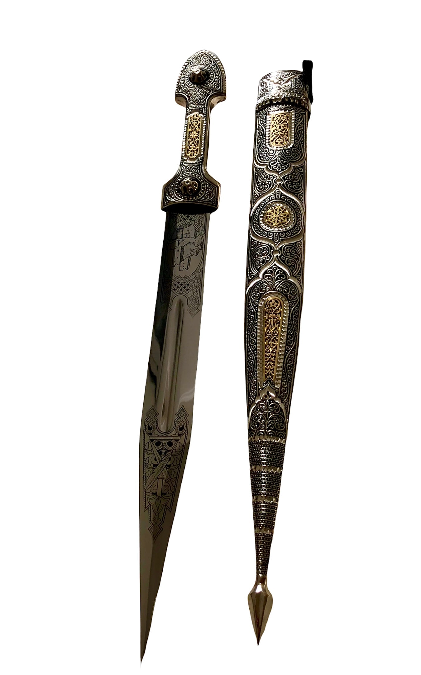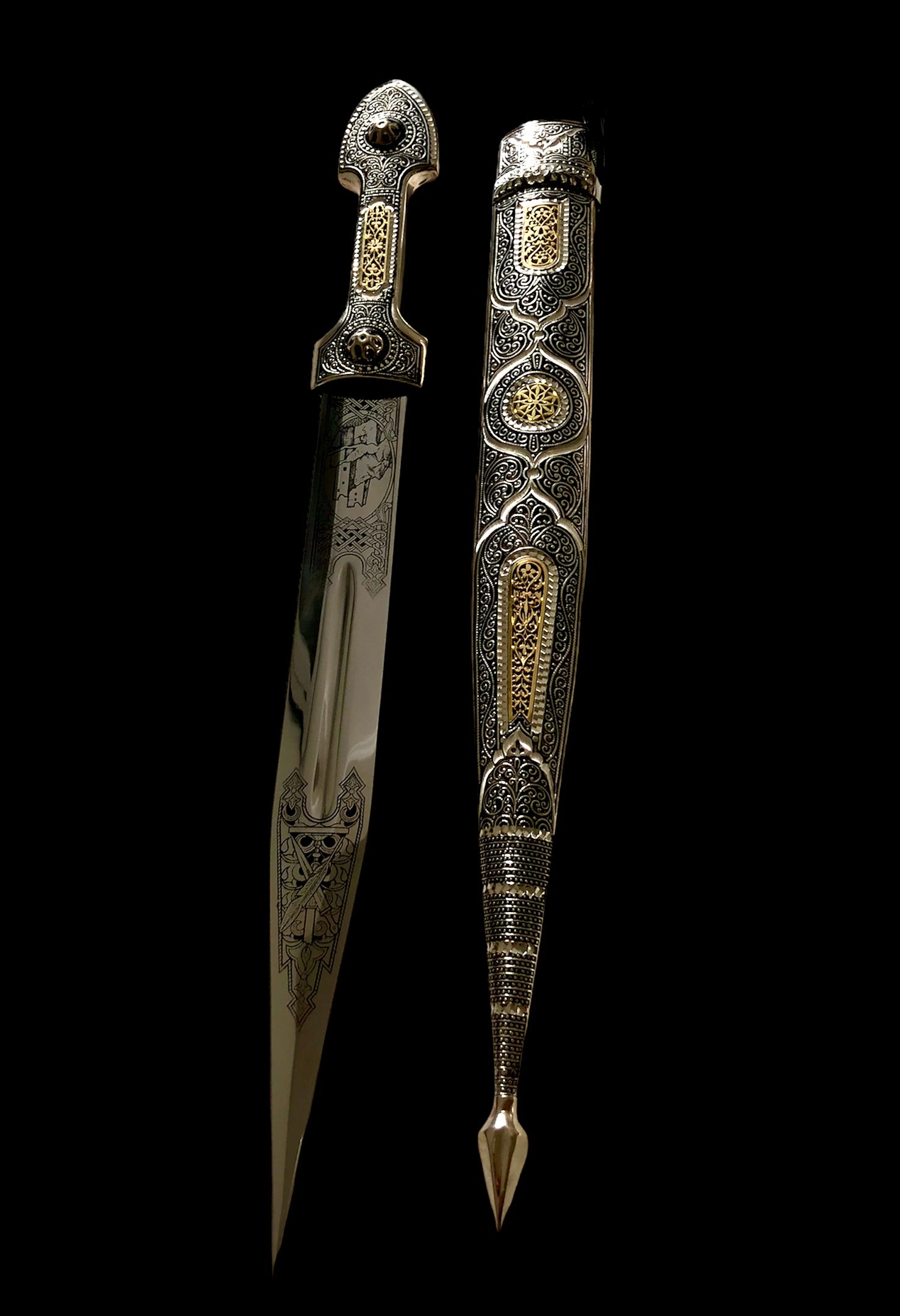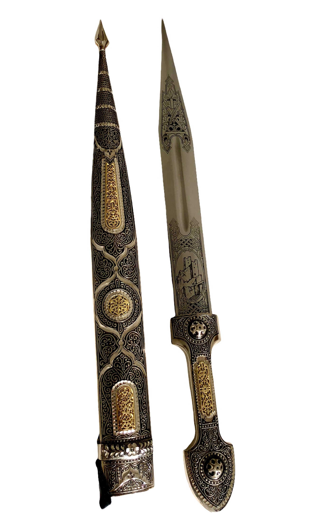 Dolk , kopernikkel, zilver, vergulde inzetstukken, kizmer-mes