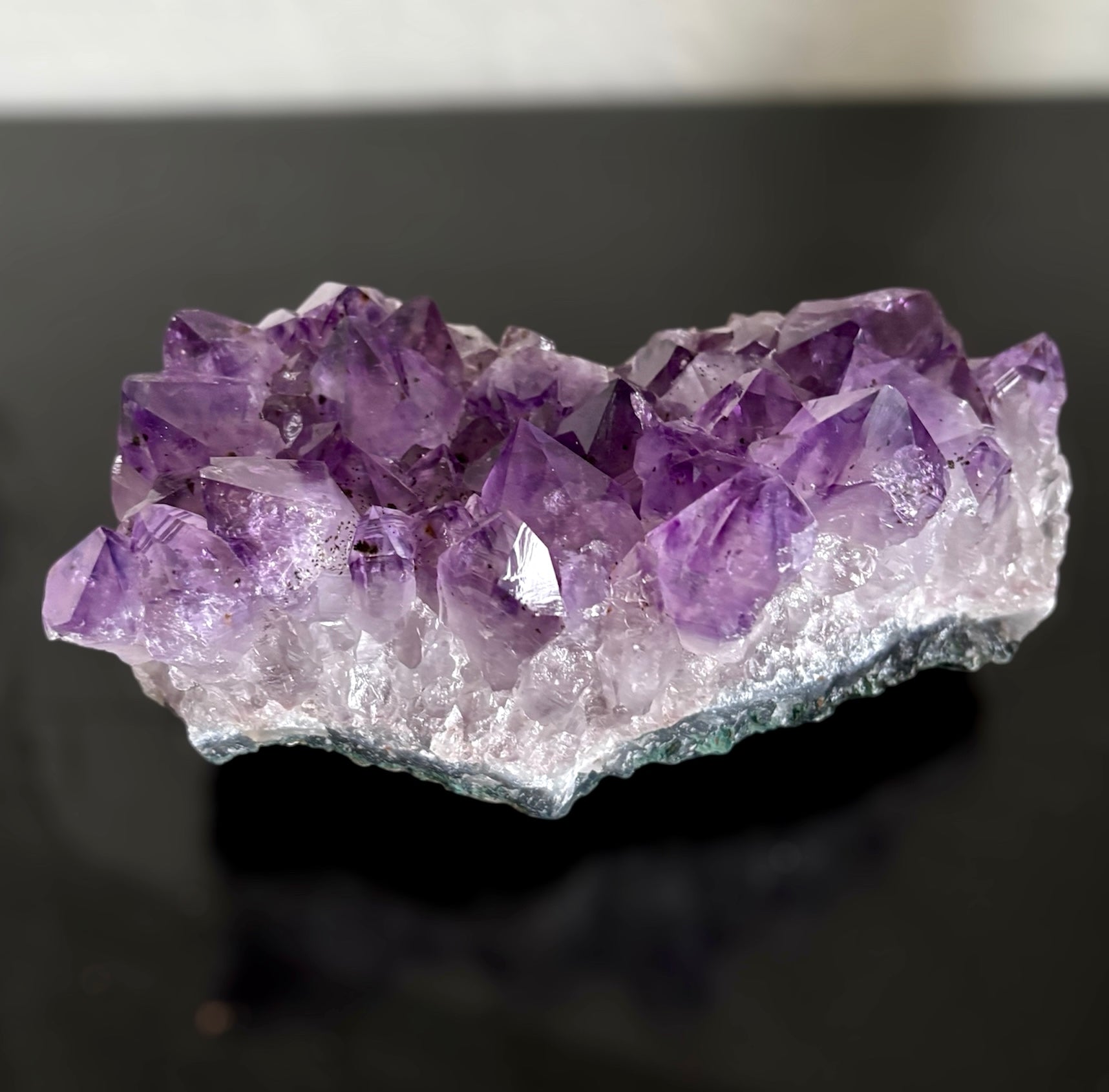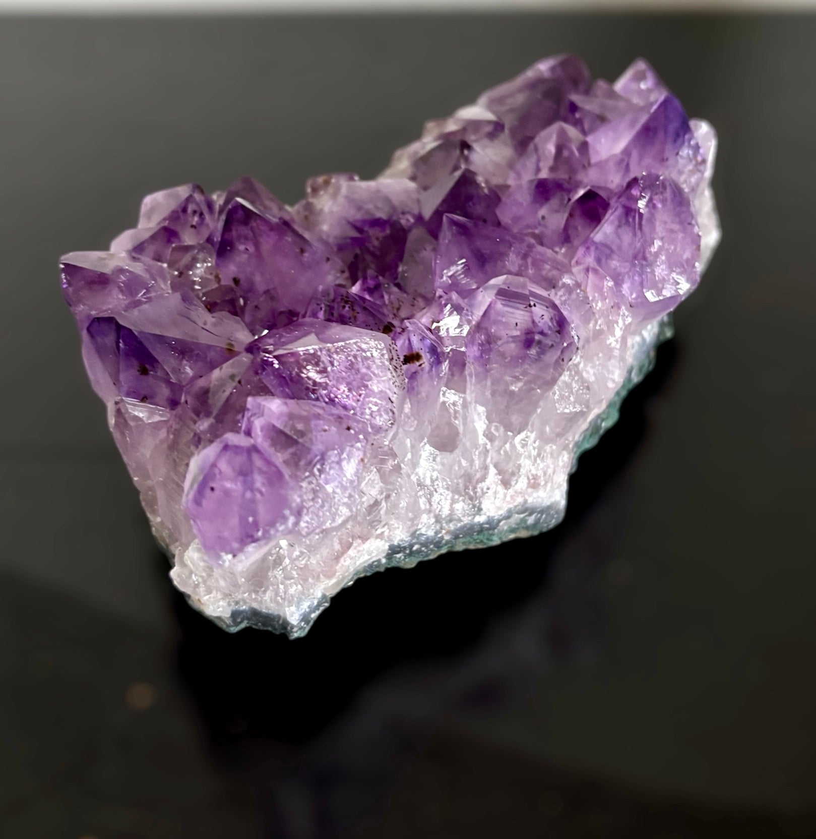 Amethist heeft een beschermende en zuiverende werking. De steen bevordert zelfinzicht en helpt je om eerlijk te zijn naar jezelf toe over gedrag dat schadelijk kan zijn en niet in dienst is van je hoogste zelf. Het helpt je bijvoorbeeld om verslavingen te onderkennen en aan te pakken. Daarnaast geeft de steen ook inzicht in emotionele processen waardoor bepaalde (pijnlijke) ervaringen verwerkt kunnen worden en ook vermijdend gedrag op dit vlak veranderd kan worden. Amethist is vanwege haar reinigende werking ook heel geschikt om een ruimte te zuiveren. Samen met bergkristal en rozenkwarts creëert het een harmonische sfeer. Omdat het de bovenste chakra’s stimuleert, kan het de intuïtie, spirituele groei en inzichten bevorderen, zeker voor mensen die aan het begin staan van hun spirituele pad. Amethist heeft ook een reinigende werking op het lichaam en een positieve invloed op het zenuwstelsel, hoofdpijn en migraine en nachtmerries en andere slaapproblemen.