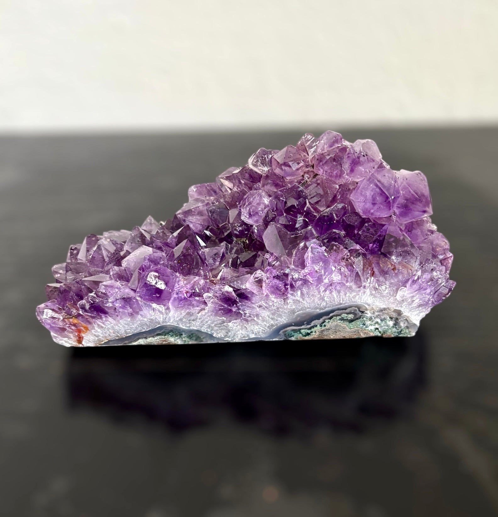 Amethist heeft een beschermende en zuiverende werking. De steen bevordert zelfinzicht en helpt je om eerlijk te zijn naar jezelf toe over gedrag dat schadelijk kan zijn en niet in dienst is van je hoogste zelf. Het helpt je bijvoorbeeld om verslavingen te onderkennen en aan te pakken. Daarnaast geeft de steen ook inzicht in emotionele processen waardoor bepaalde (pijnlijke) ervaringen verwerkt kunnen worden en ook vermijdend gedrag op dit vlak veranderd kan worden. Amethist is vanwege haar reinigende werking ook heel geschikt om een ruimte te zuiveren. Samen met bergkristal en rozenkwarts creëert het een harmonische sfeer. Omdat het de bovenste chakra’s stimuleert, kan het de intuïtie, spirituele groei en inzichten bevorderen, zeker voor mensen die aan het begin staan van hun spirituele pad. Amethist heeft ook een reinigende werking op het lichaam en een positieve invloed op het zenuwstelsel, hoofdpijn en migraine en nachtmerries en andere slaapproblemen.