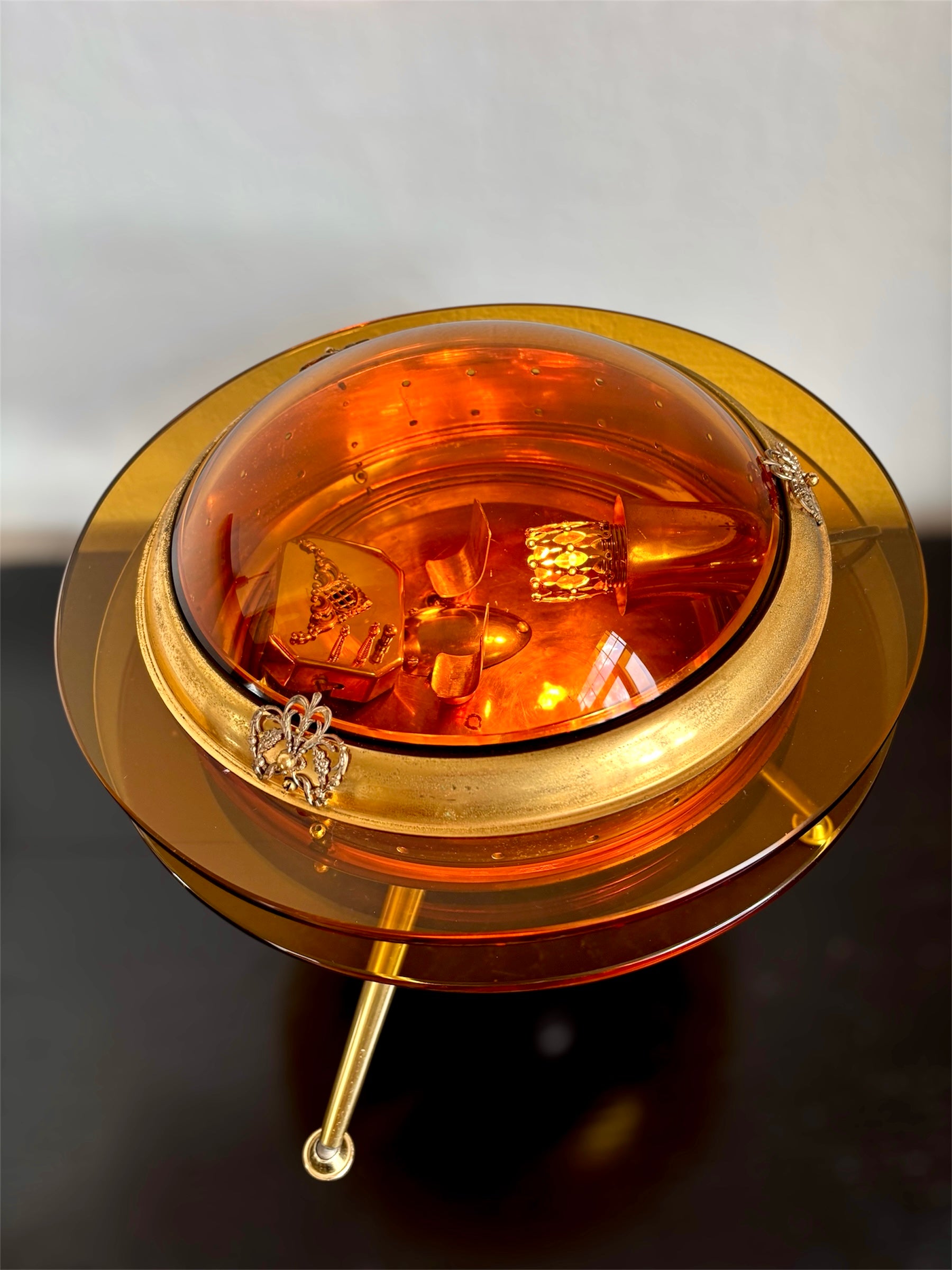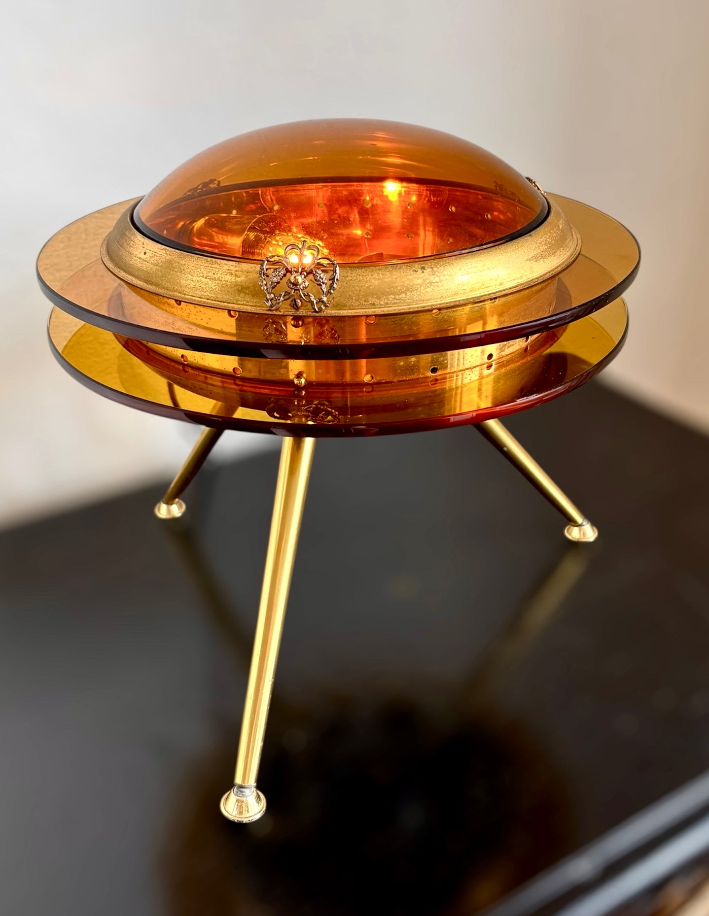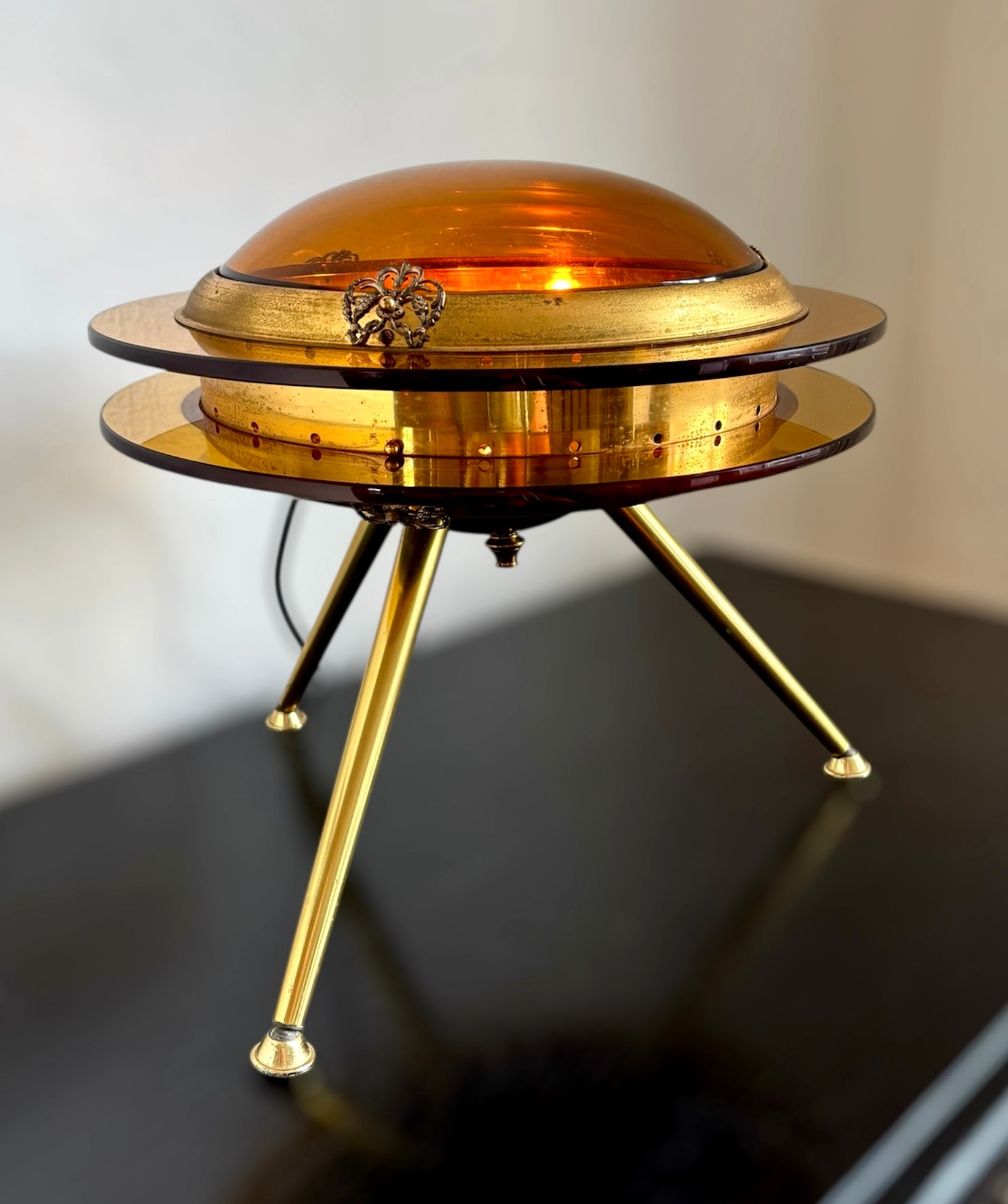 flying saucer x-2 ๐ธ , Table lamp ,Created by Kristof Decuypere. copper and glass. H 32, D 36