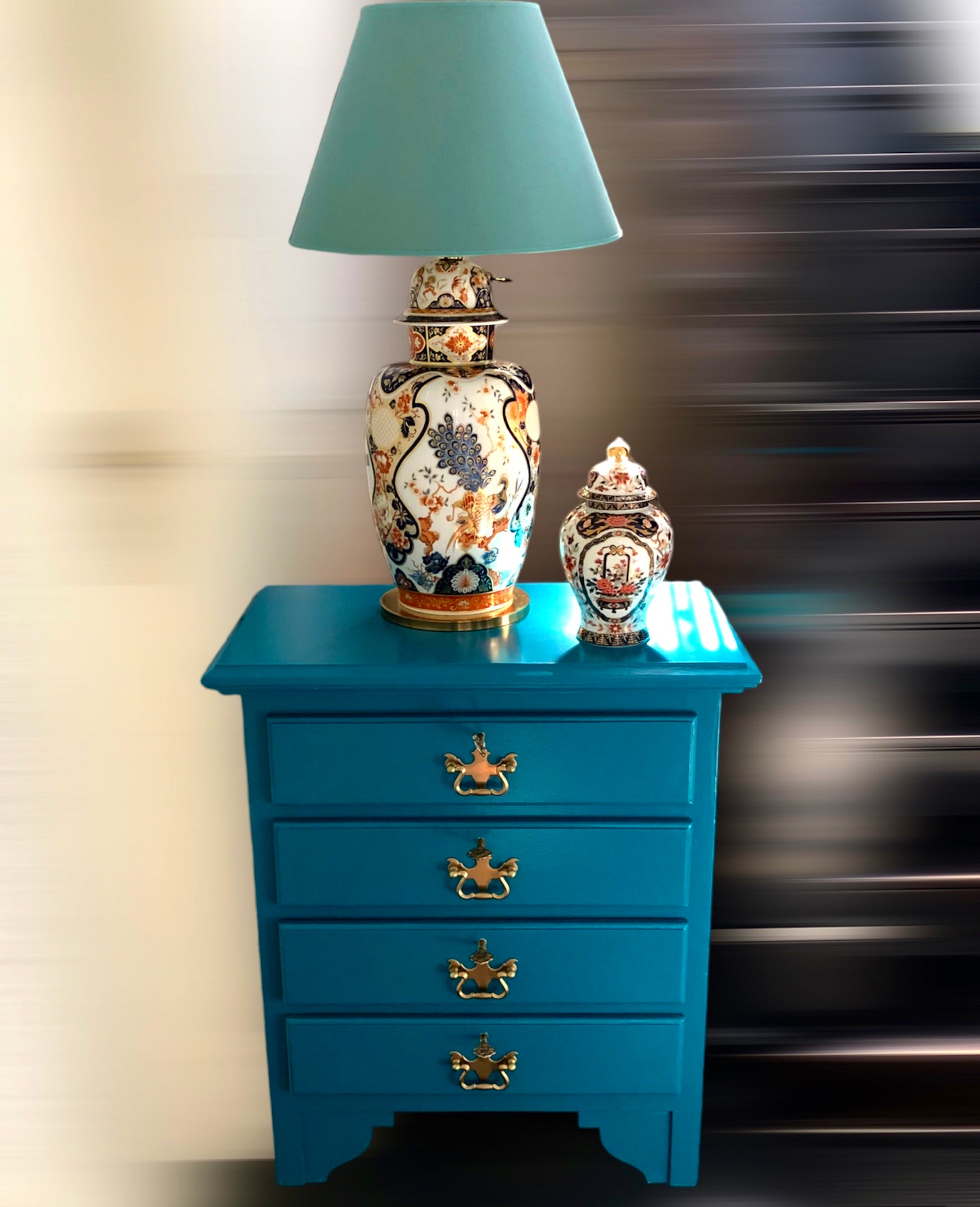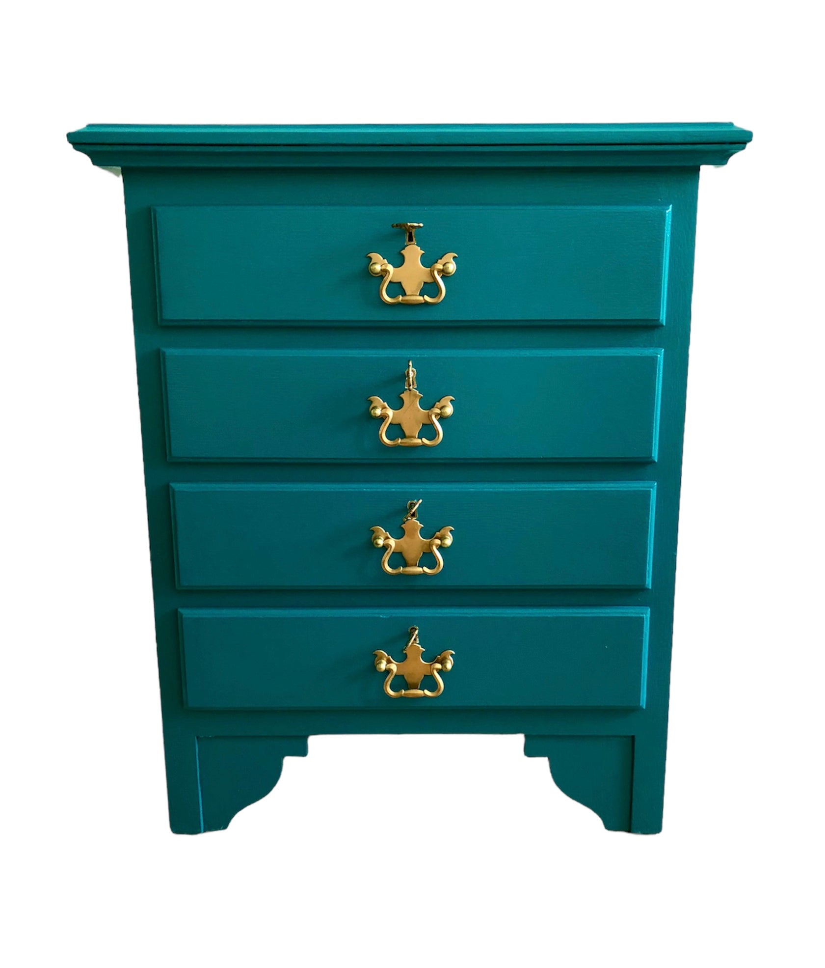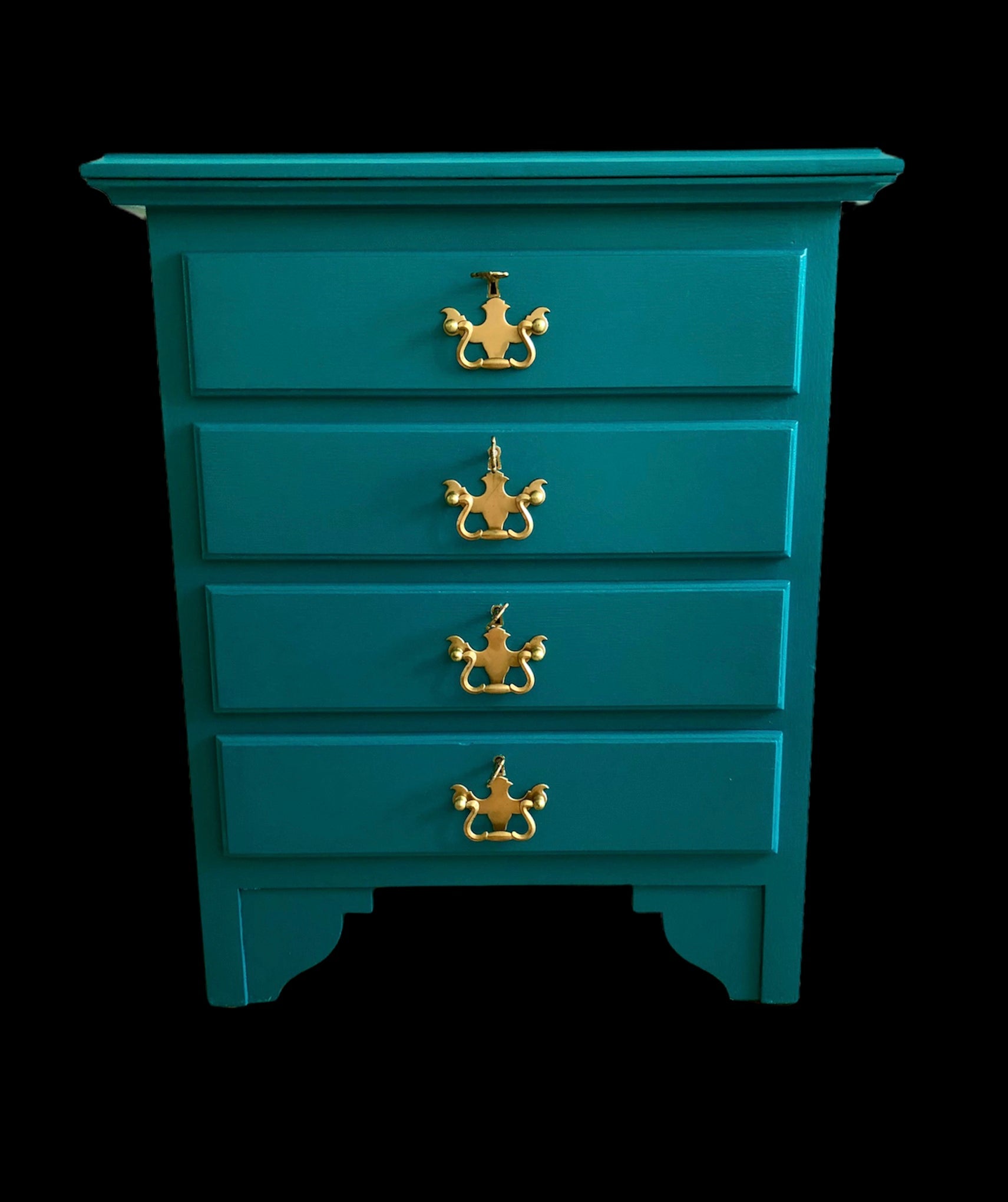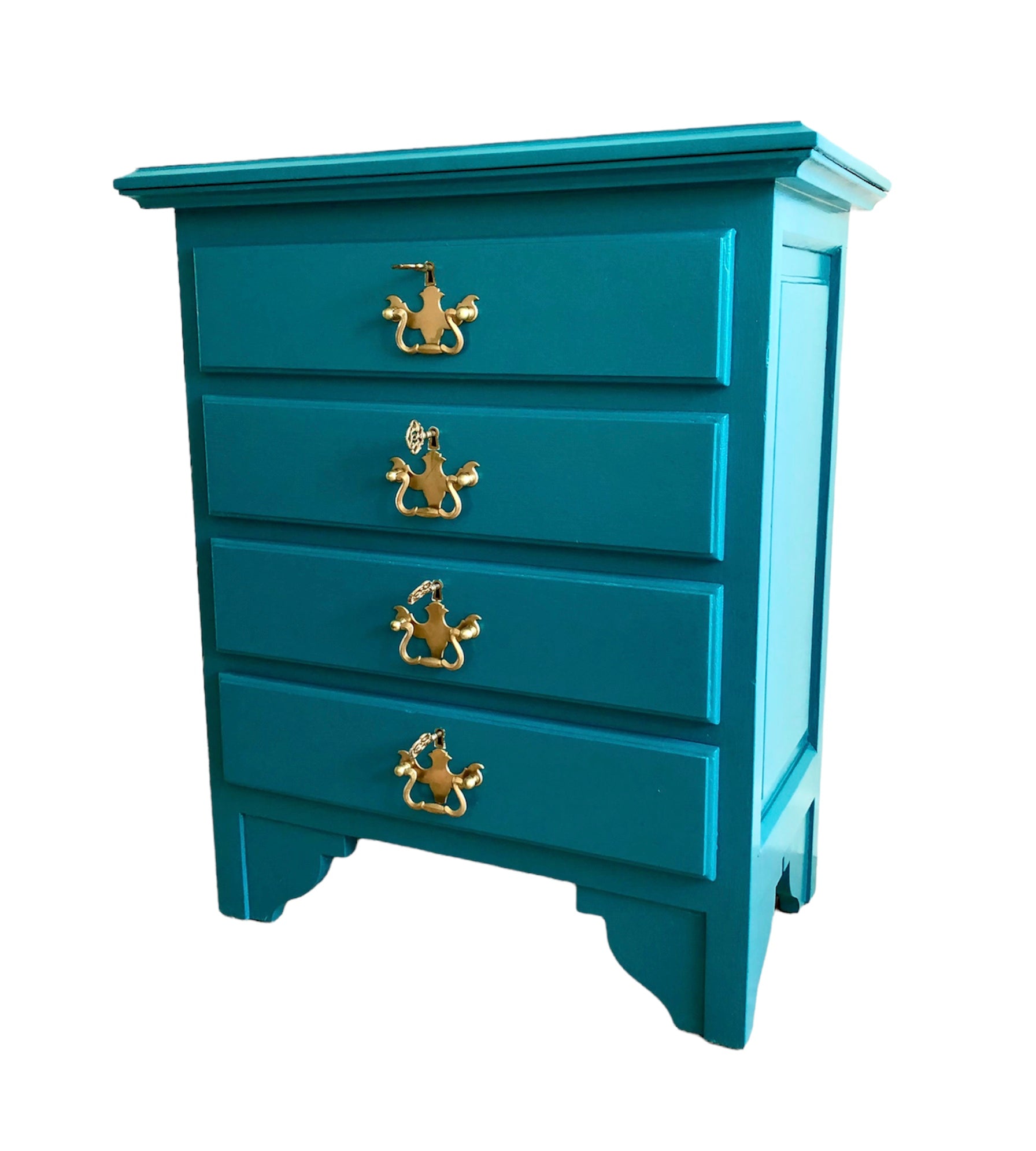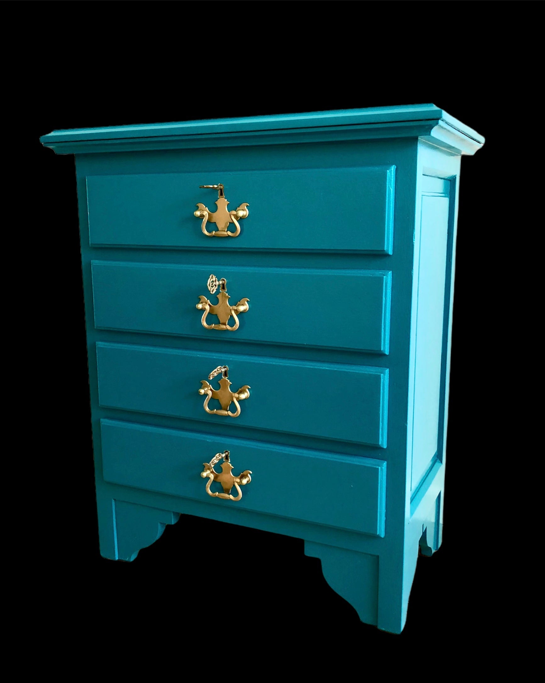 Kast in art-deco stijl /massief hout, kleur- turquoise / L68 /B38 /H80