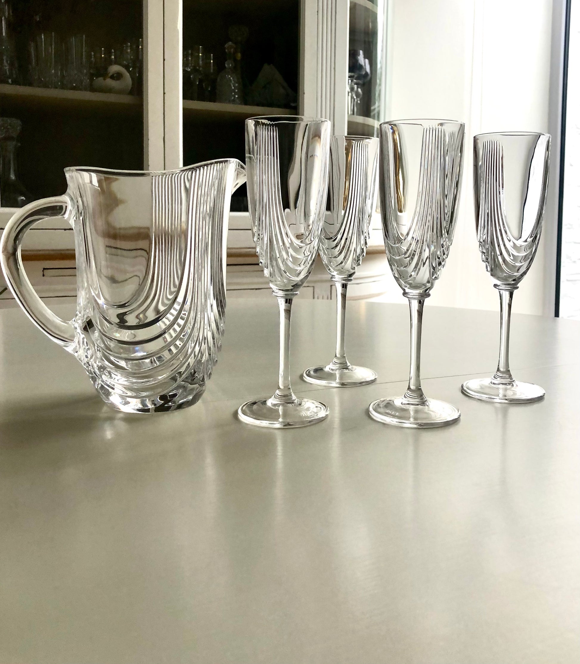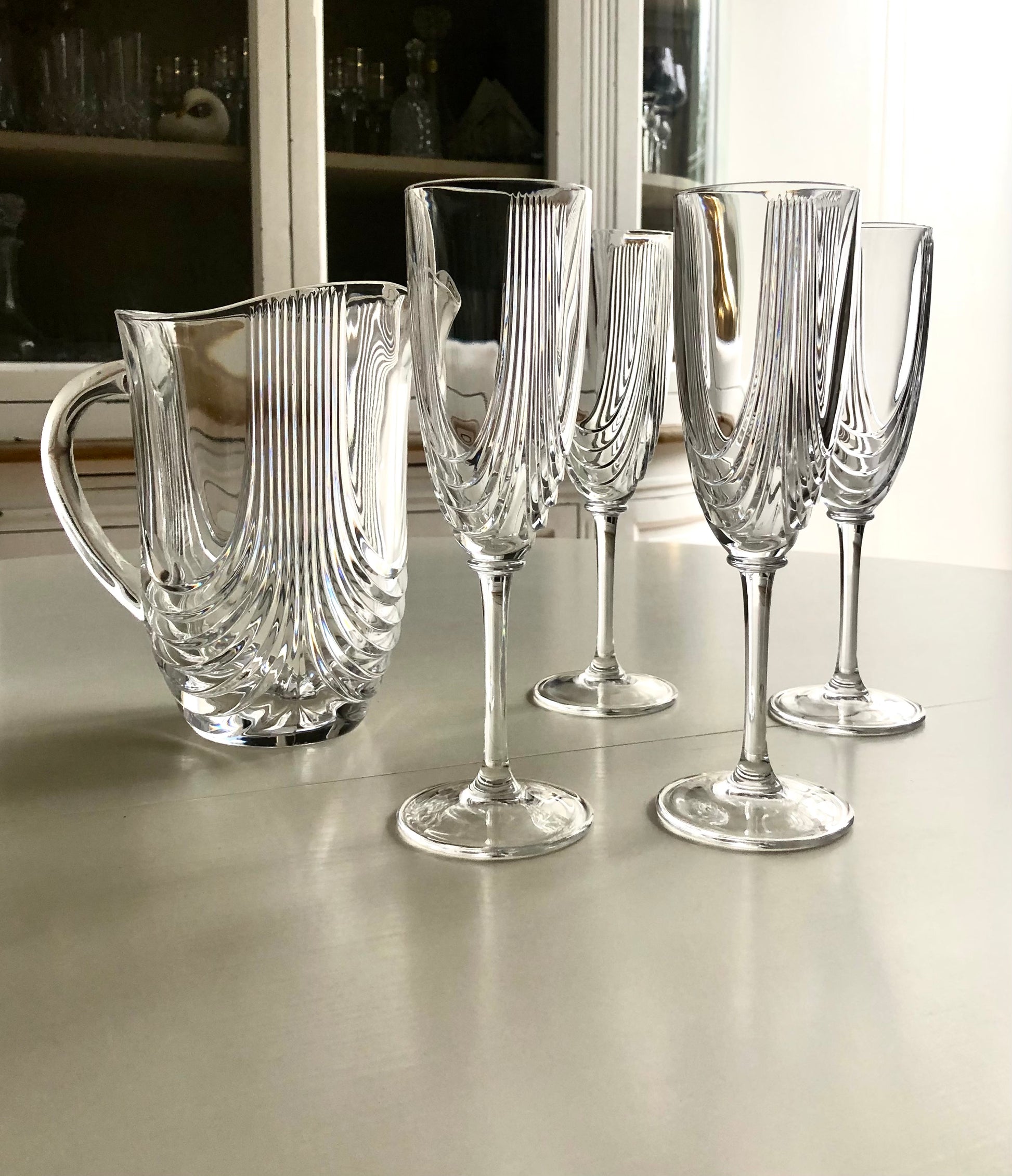Crystal set Magnolia by Royal Crystal Rock( 4 glasses 21cm, pitcher 18cm)