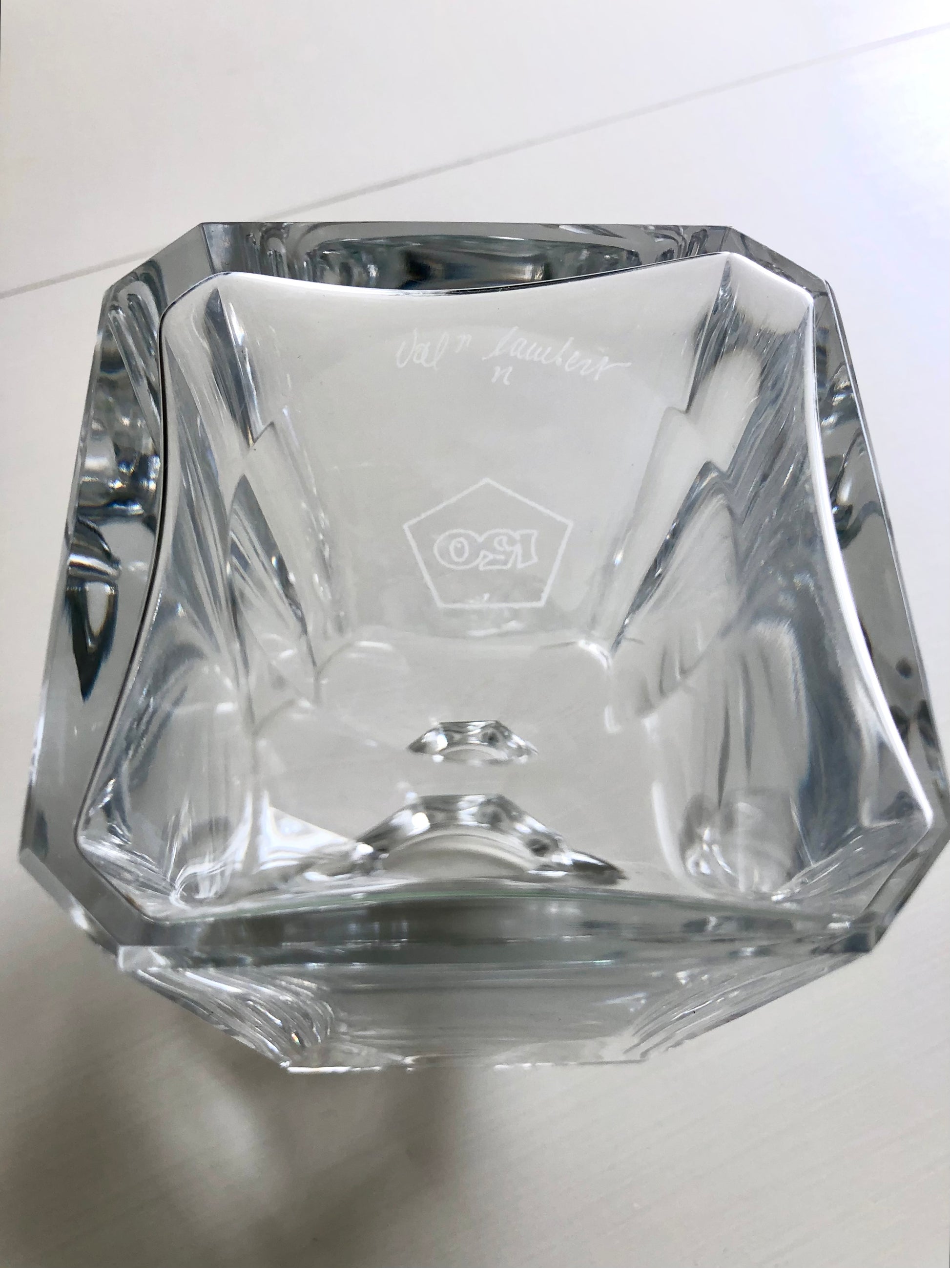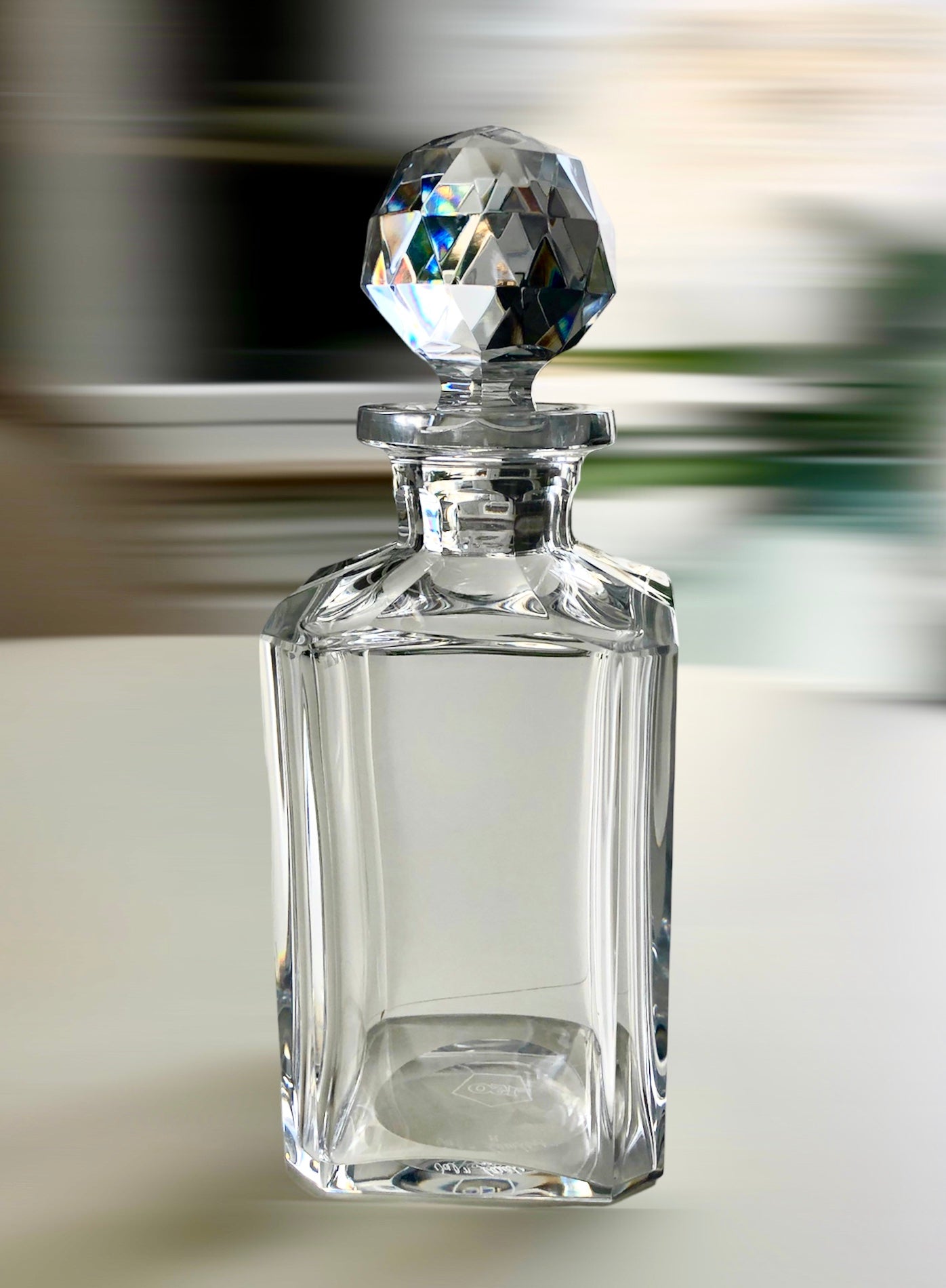 Kristallen karaf van Val Saint Lambert , vintage karaf met prachtige multifacet stop in nieuwstaat, gesigneerd op de bodem Val Saint Lambert 150.
