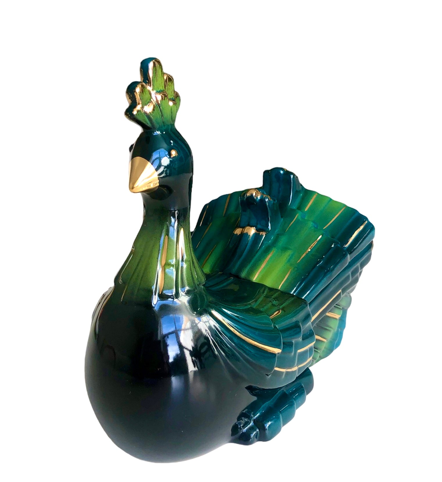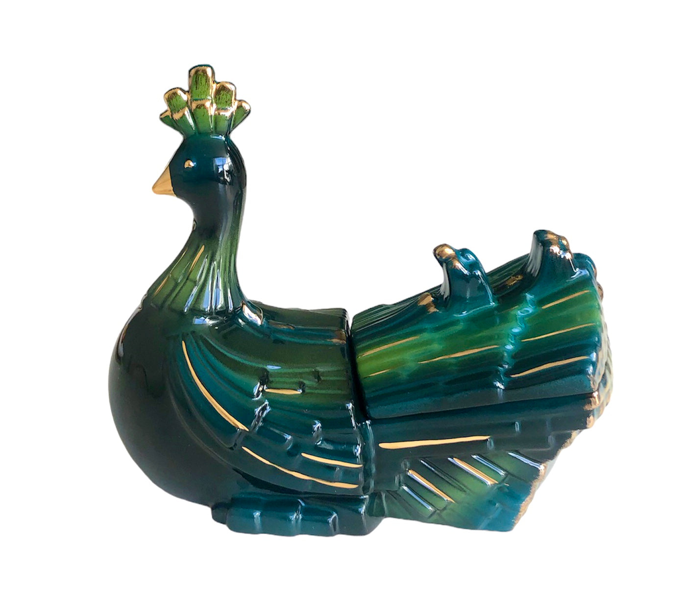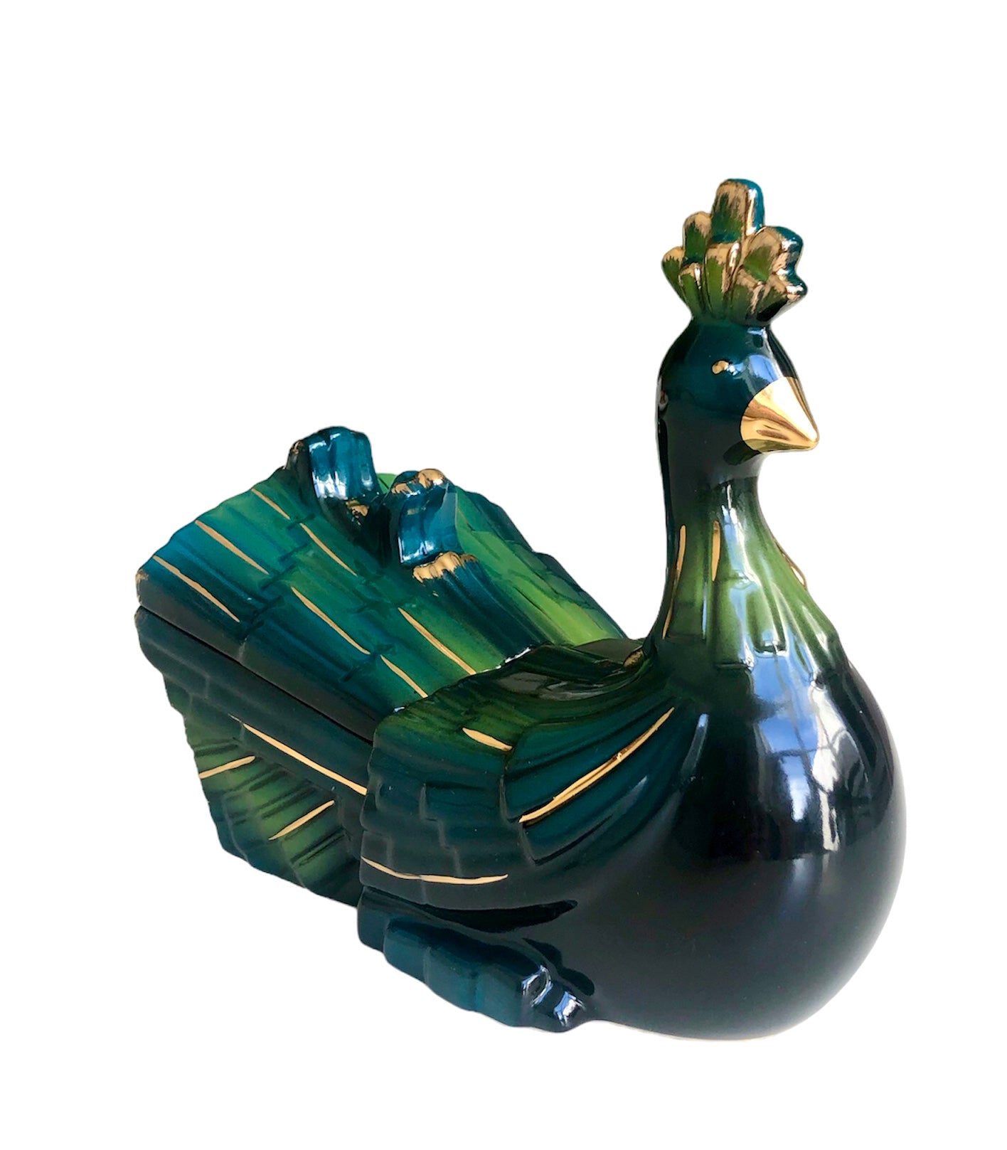 Vintage art deco pauw snoepdoos in terracotta, Frankrijk 1940