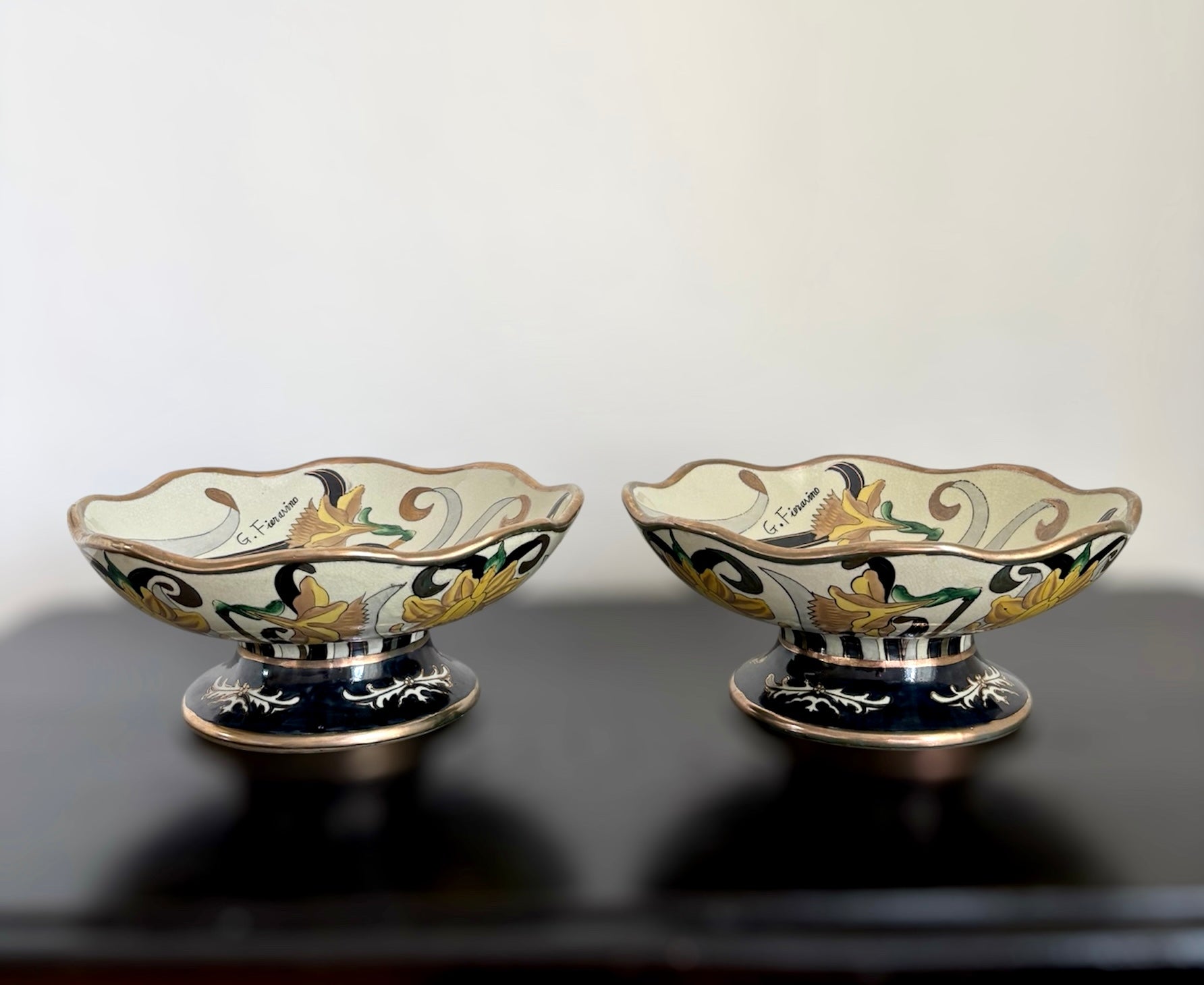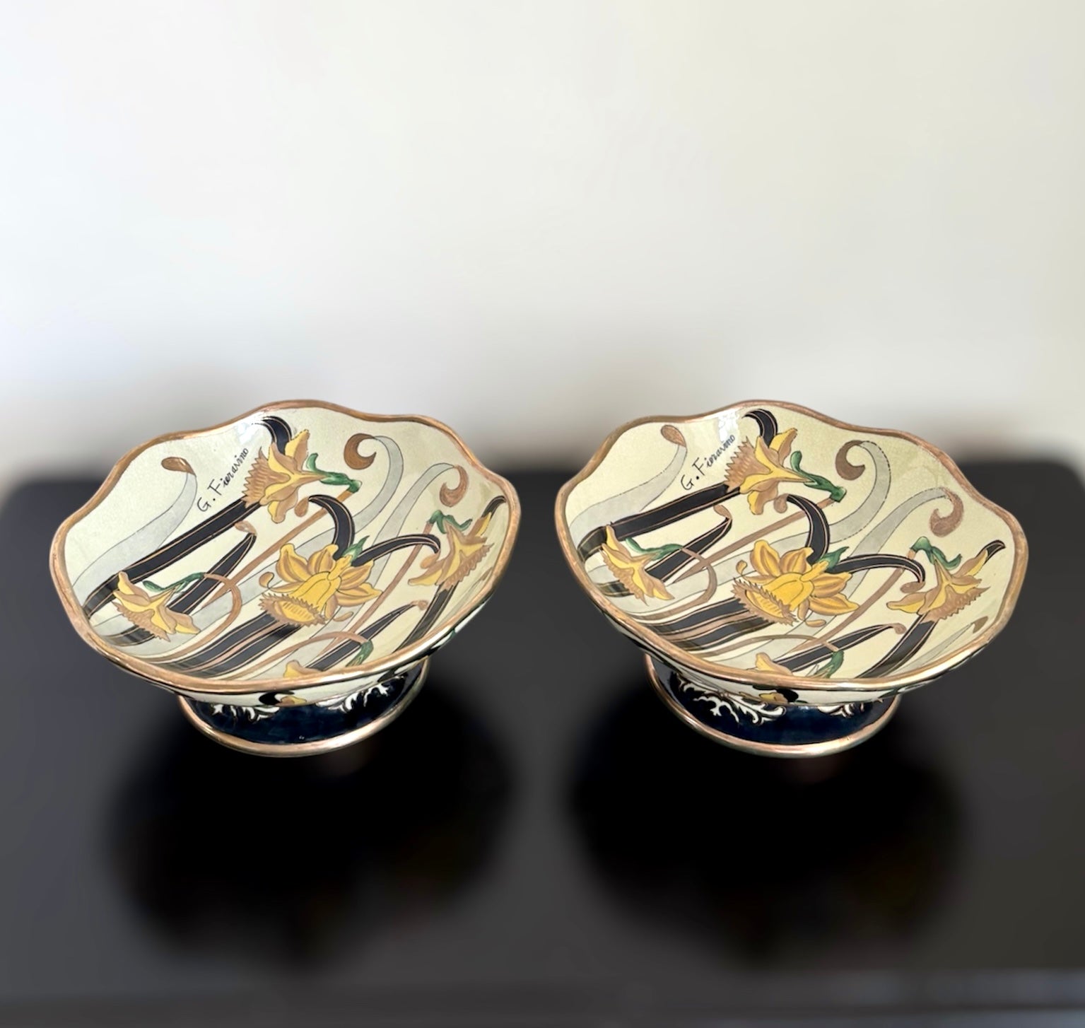 Antieke Italiaanse keramische schalen, art nouveau van G. Fieravino, prijs voor 2 schalen