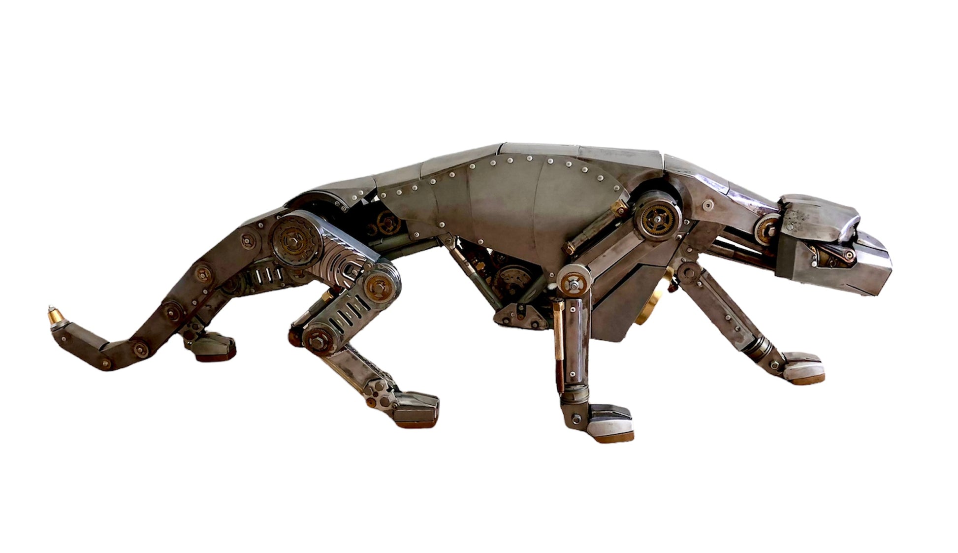 Metalen sculptuur Panter , uniek kunst stuk / L140 /B30 /H42