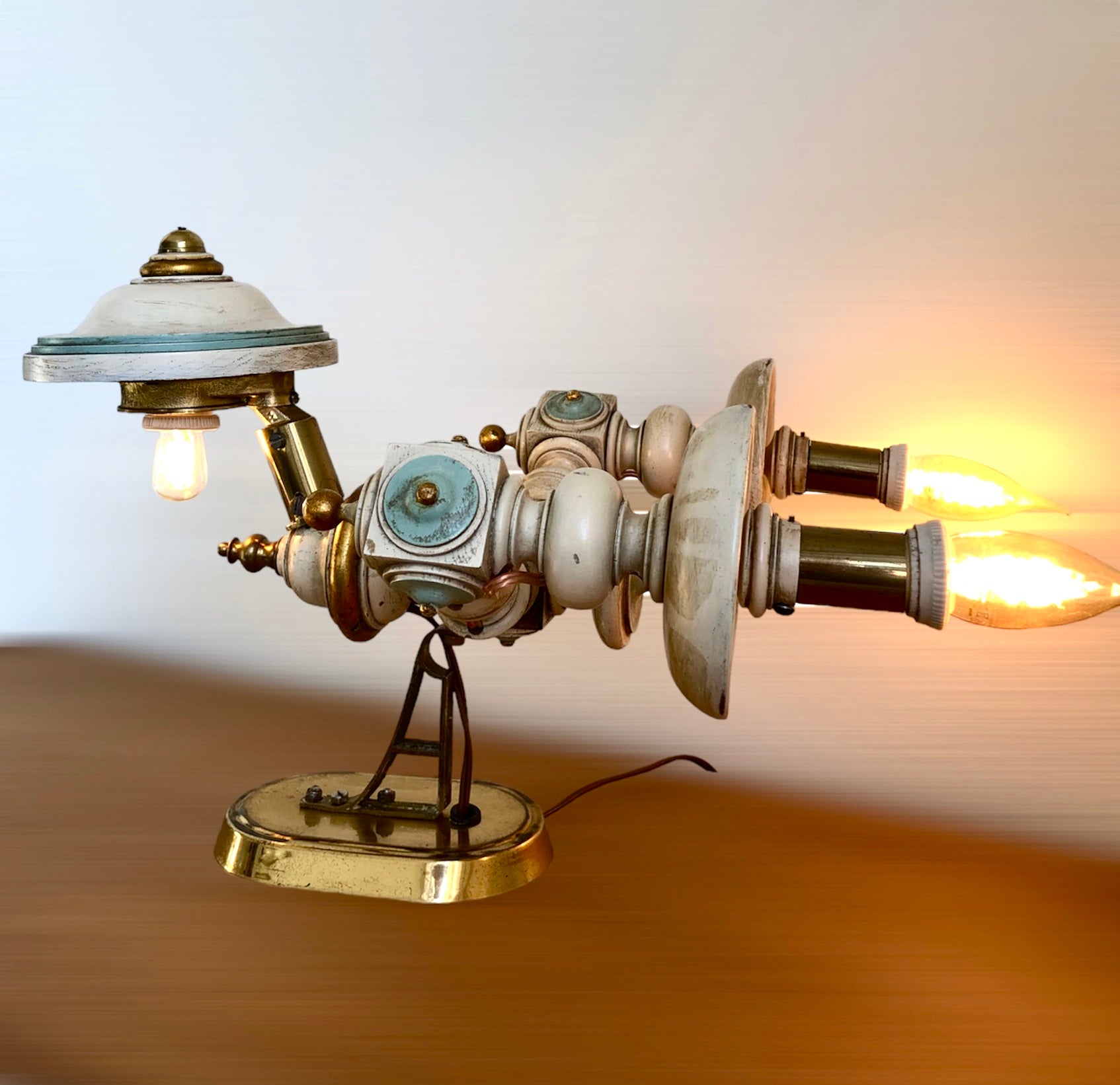 Deze prachtige tafellamp belichaamt de geest van het legendarische Starship Enterprise. De aanwezigheid ervan geeft het gevoel dat je aan een intergalactische reis begint, terwijl de warme gloed van de lichten een vleugje tijdloze elegantie aan elke ruimte geeft. De tafellamp is handgemaakt van eikenhout en messing /L52 /B36 /H30