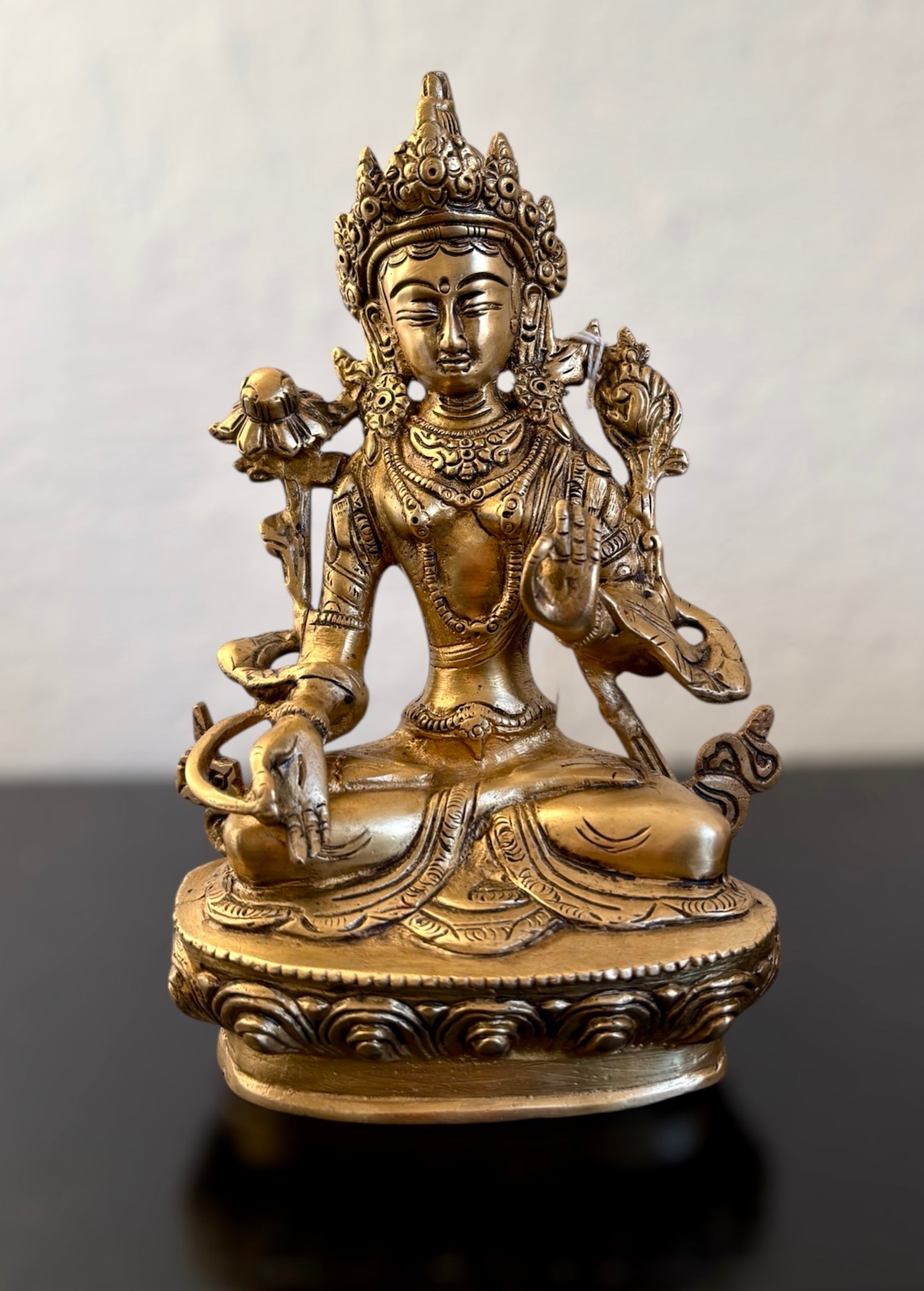 - Fijn gedetailleerd bronzen beeld van de Witte Tara uit India , handgemaakt eind 20ste eeuw. H20cm