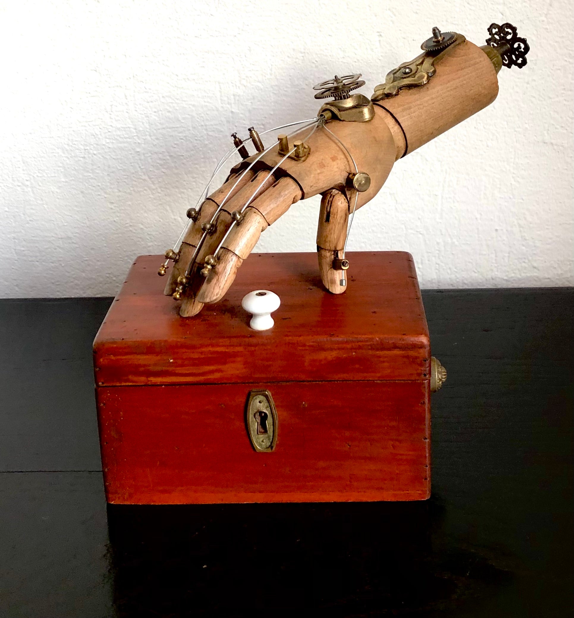 Antieke juwelendoos met unieke Steampunk Thing. Creatie van Kristof Decuypere. H25/ B32