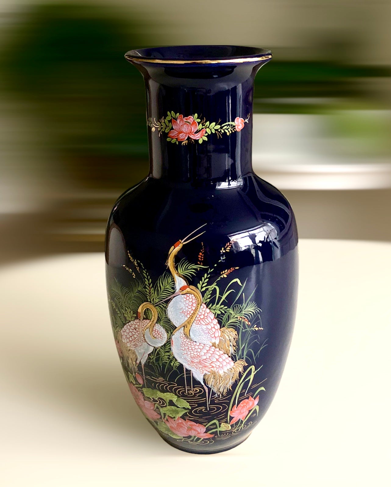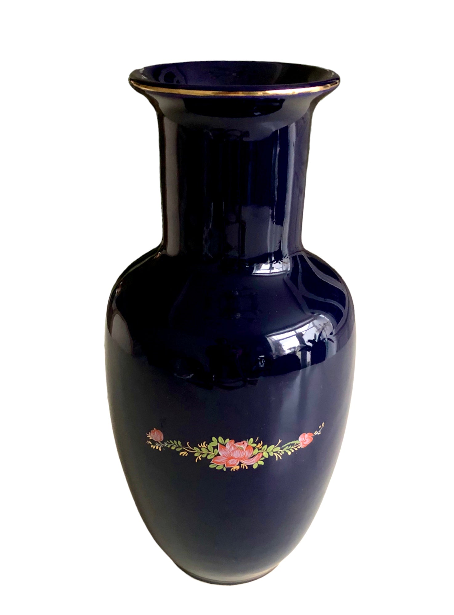 kobaltblauwe vaas afgewerkt met 24 karaats goud / H27, Italie